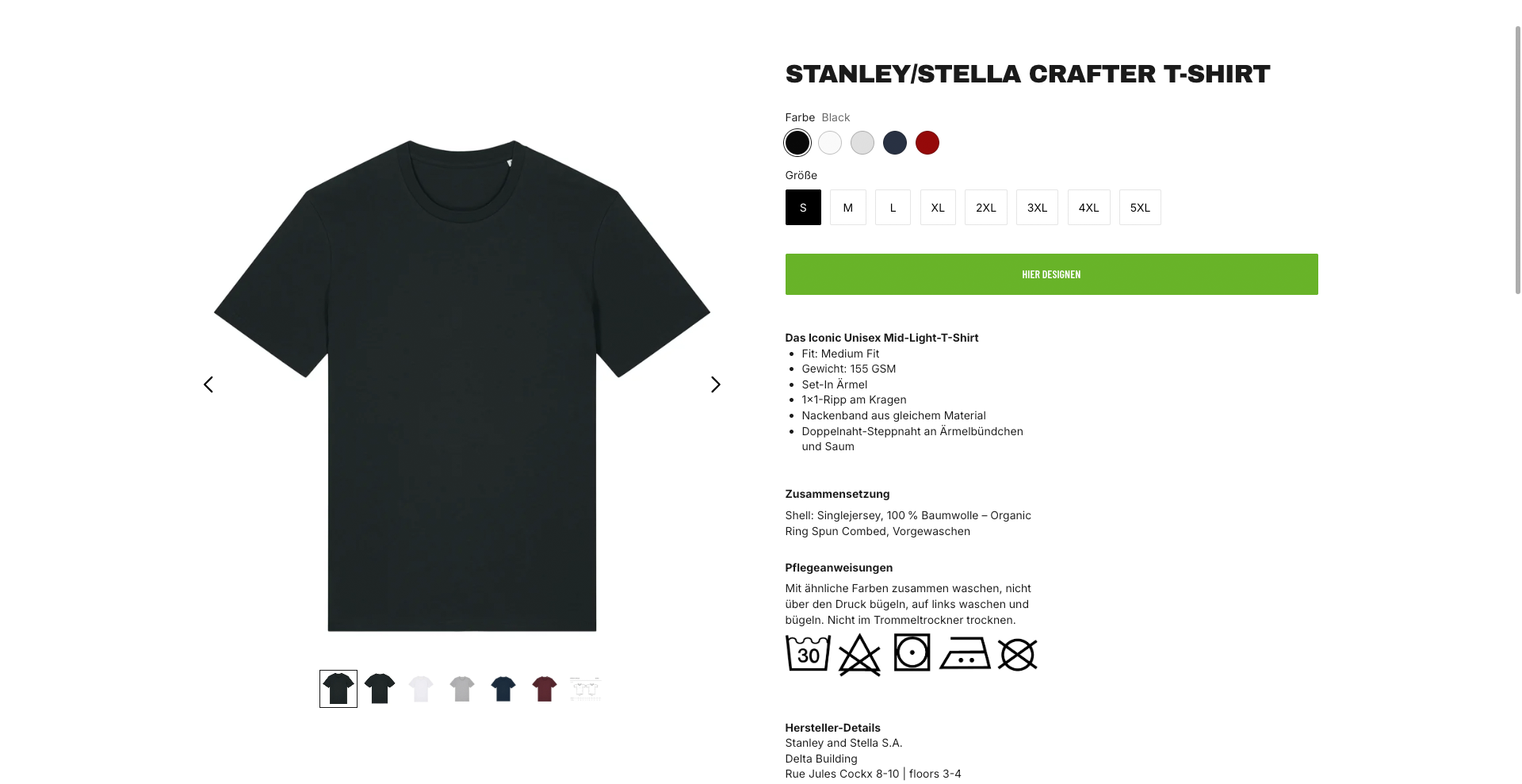 Auf der Artikelseite bestimmst du zuerst das Aussehen deines Produkts:
